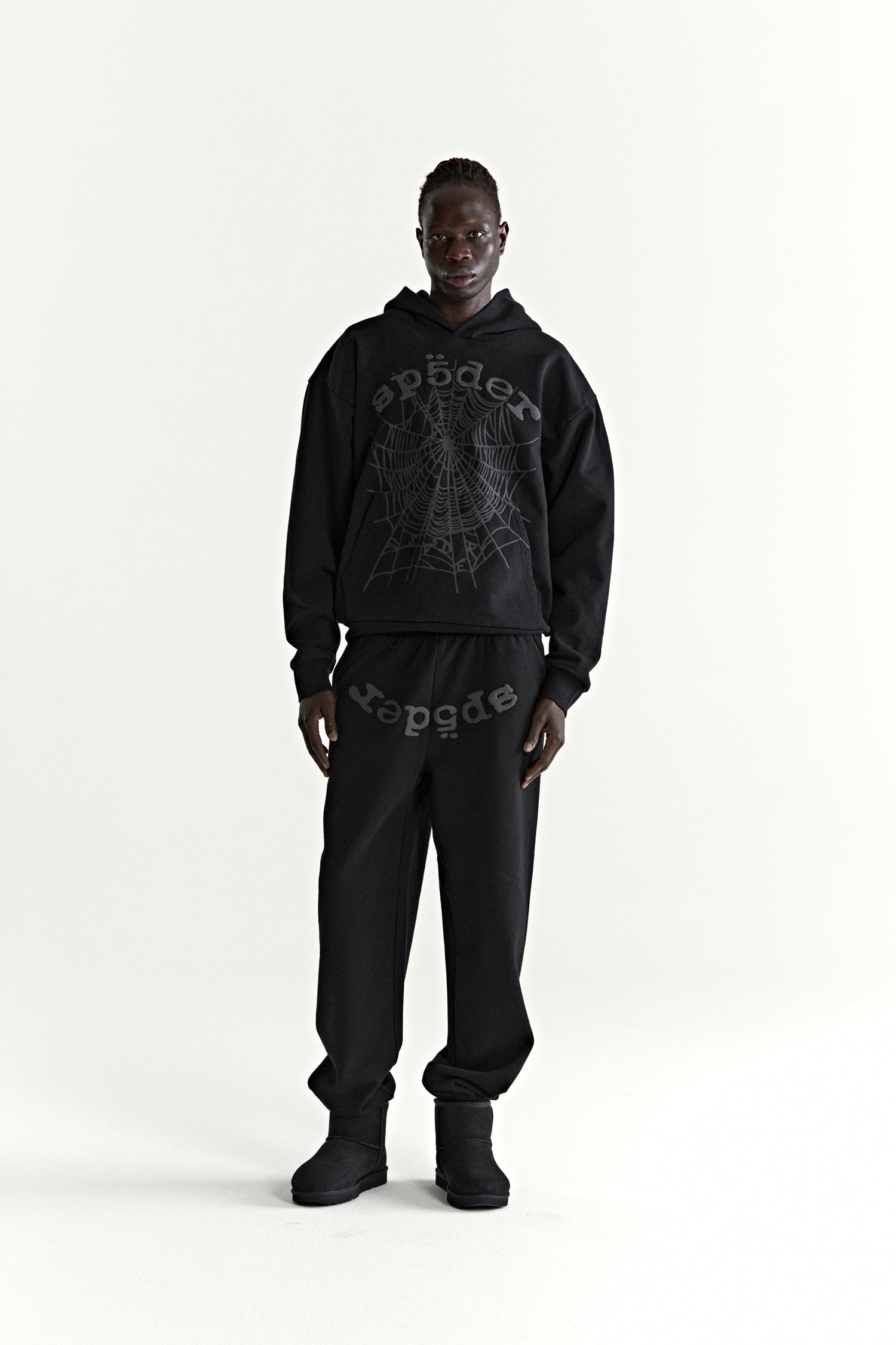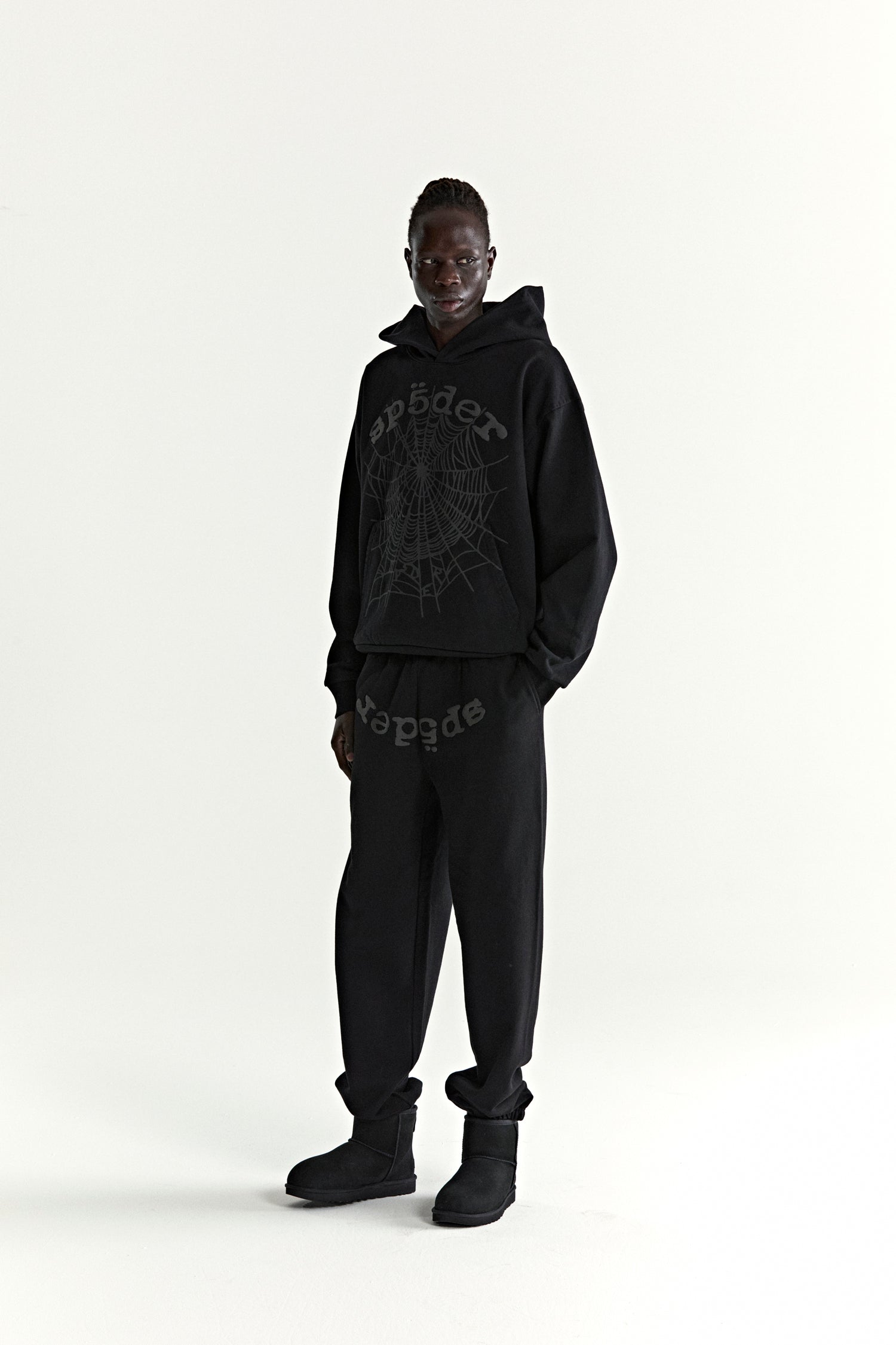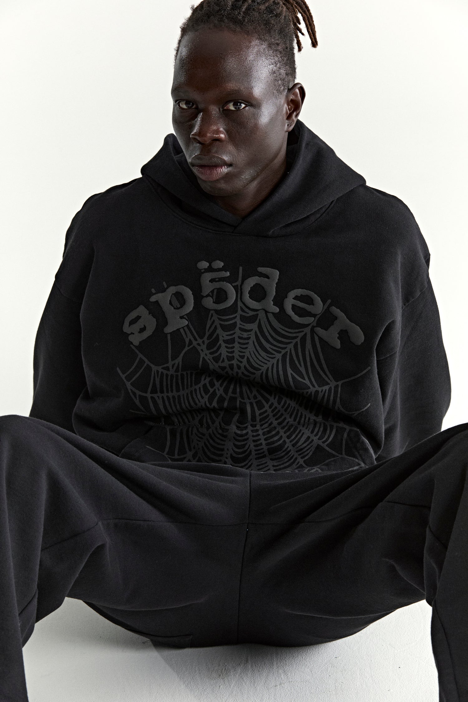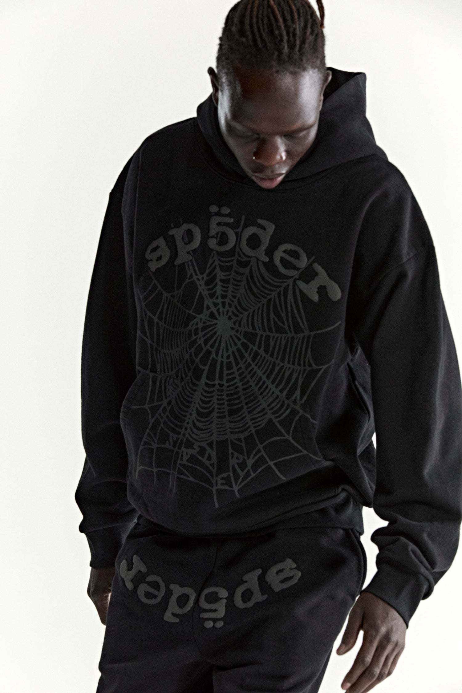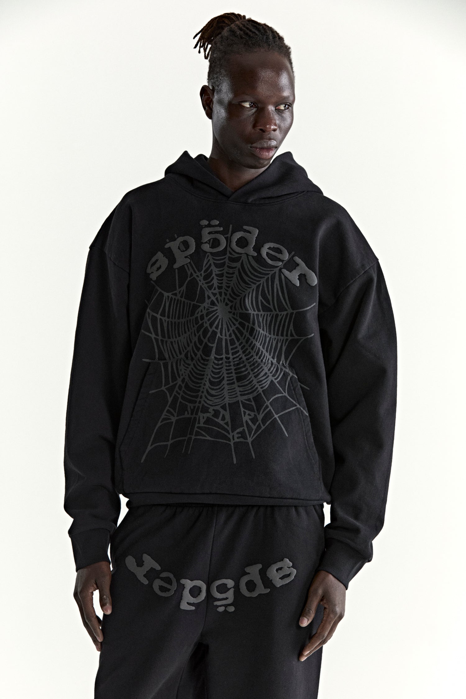 13oz, 100% cotton fleece. Puff print / discharge print combination. Phantom web print on front. Kangaroo pocket. Rib knit hem and cuffs.
