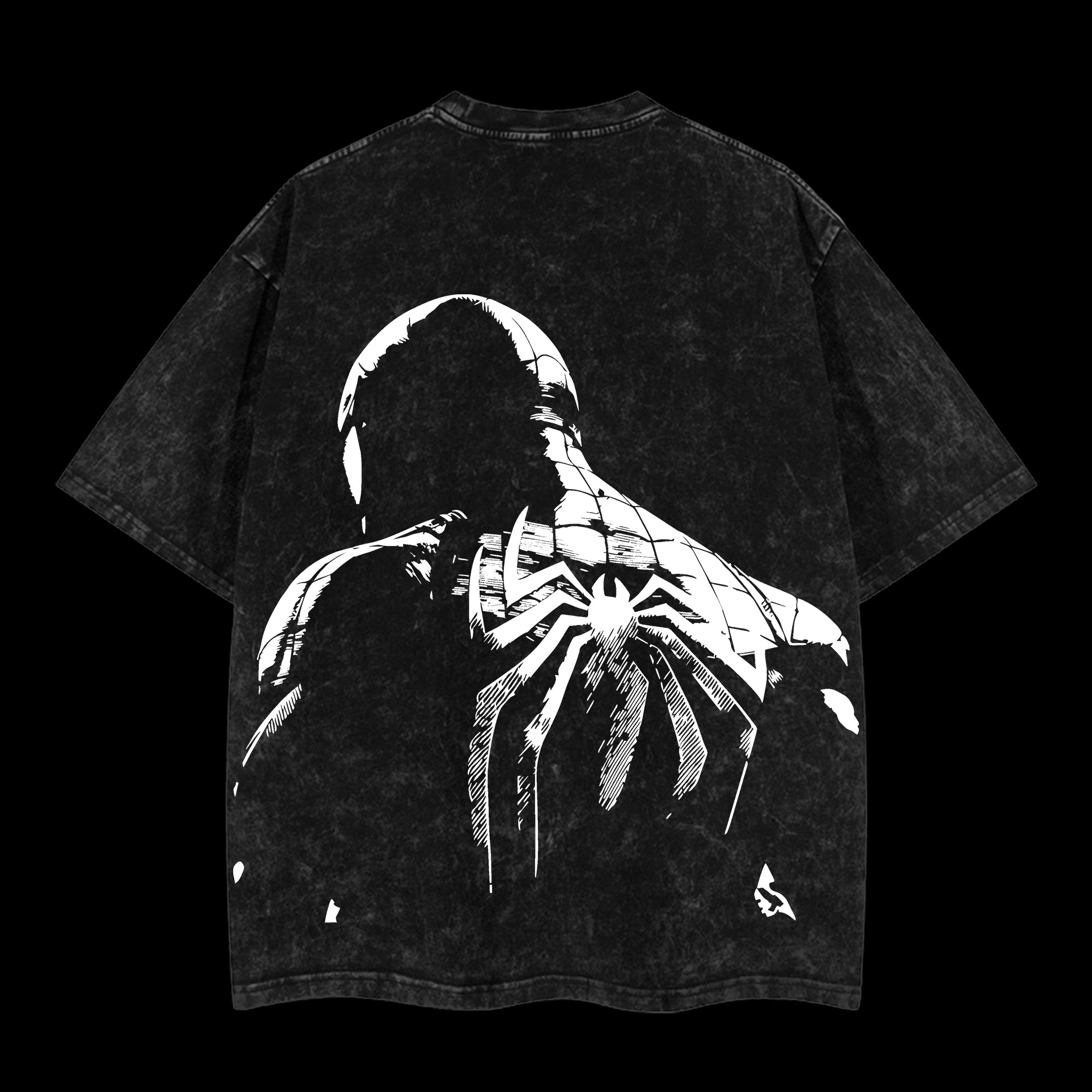 Friendly Neighborhood Spider-man Hero Dark Mutation Shadow Marvel MCU Comic Double Printed Oversize Lightweight Acid Washed T-Shirt
