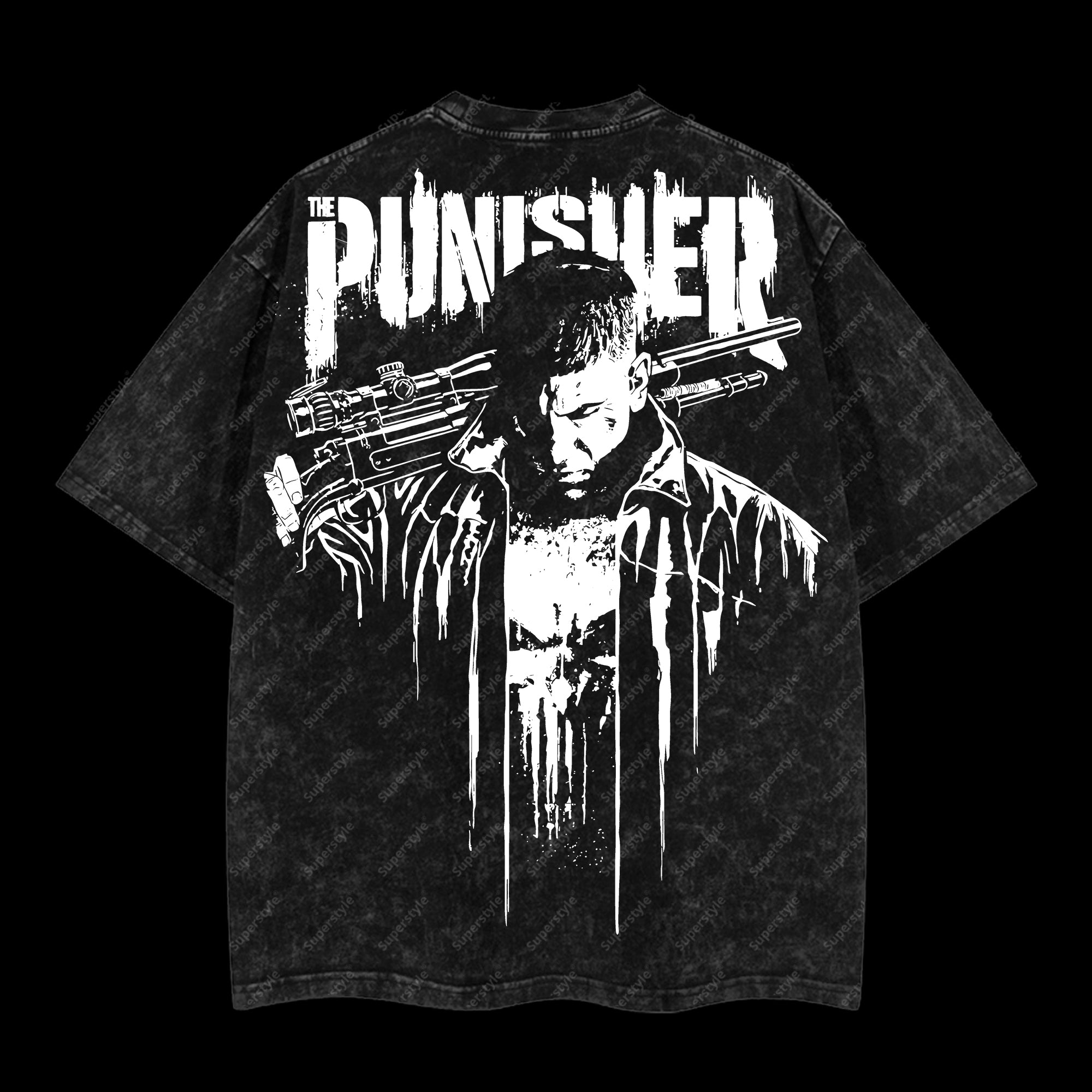 Frank Castle "The Punisher" War Machine Marvel MCU Comic Edition Double Printed Oversize Lightweight Acid Washed T-Shirt