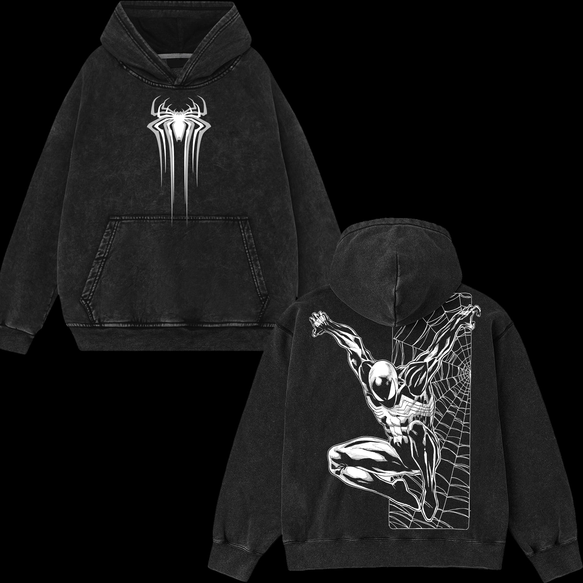 [Collection] Friendly Neighborhood Spider-man Black Suit Hero Marvel MCU Edition Double Printed Oversize Lightweight Acid Washed Hoodie