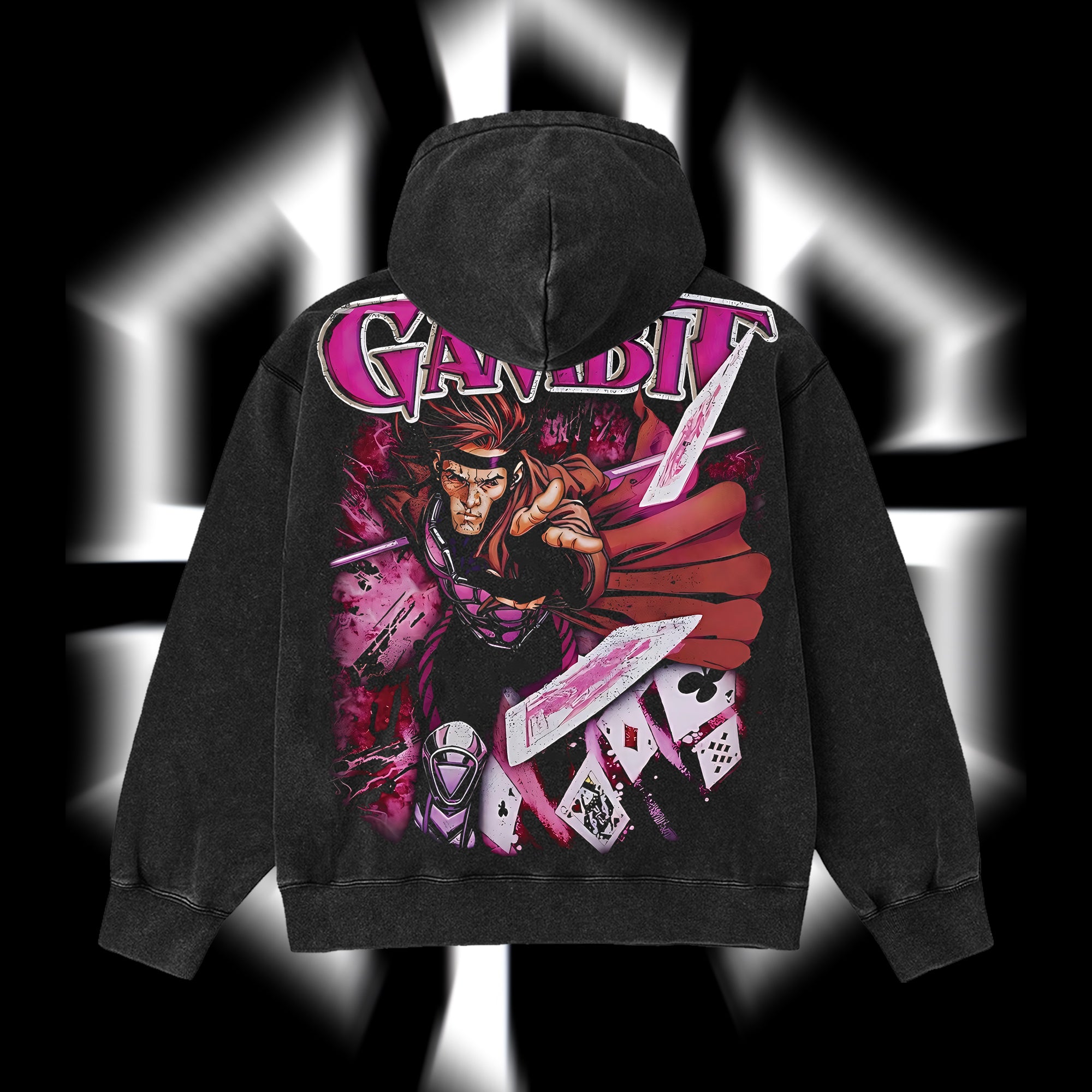 The Card Master "Gambit" Marvel MCU Edition Double Printed Oversize Lightweight Acid Washed Hoodie